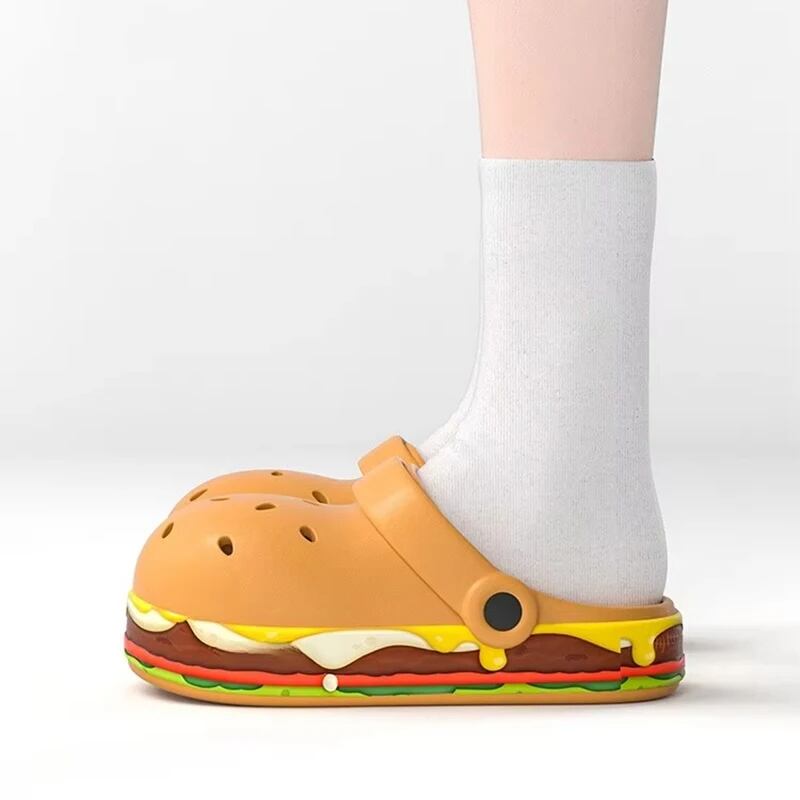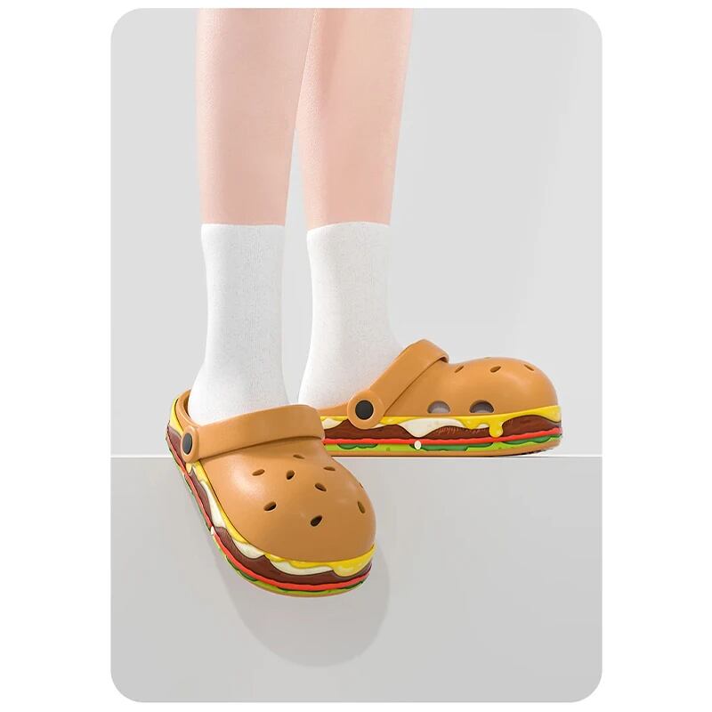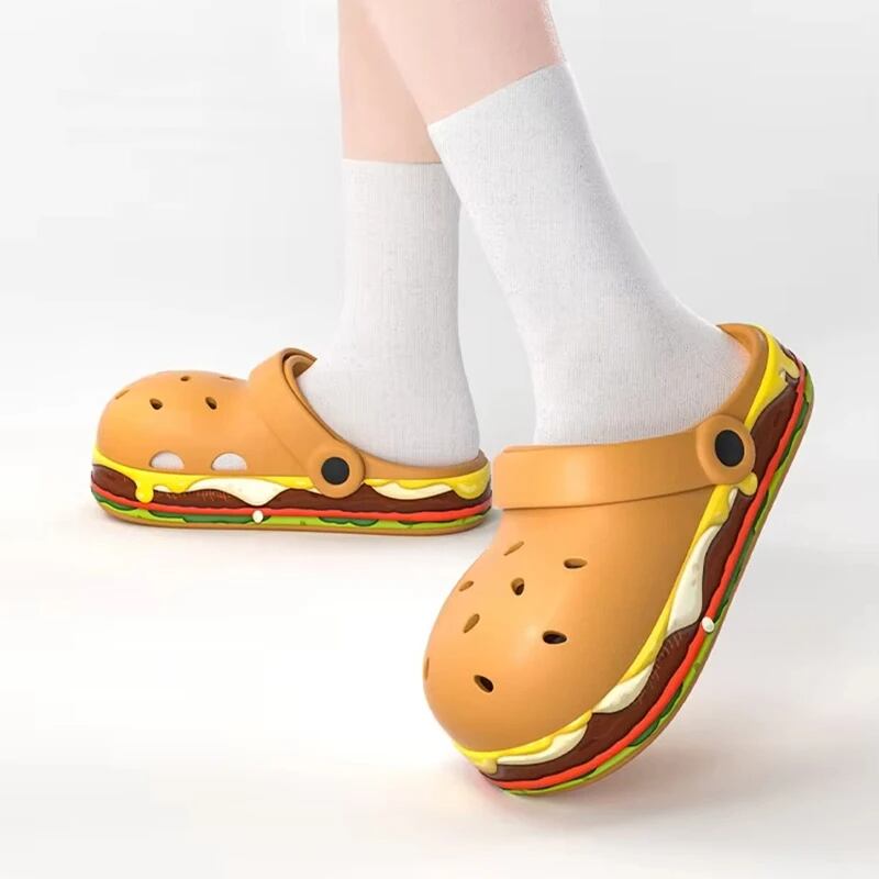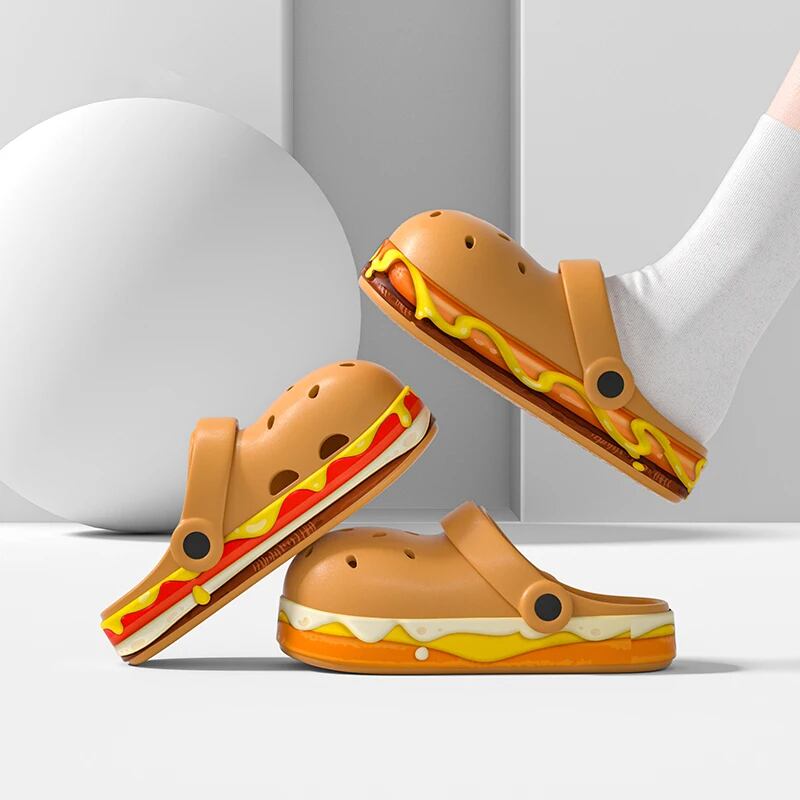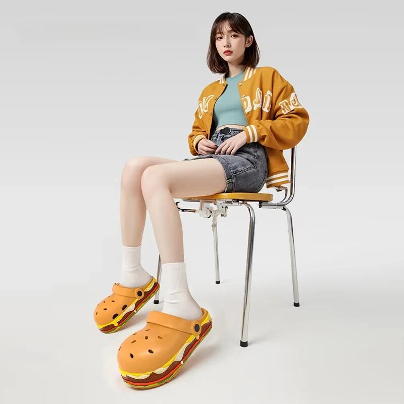 【チーズバーガー EVAラバーサンダル|モダンで斬新なデザインの夏用スリッパ!】