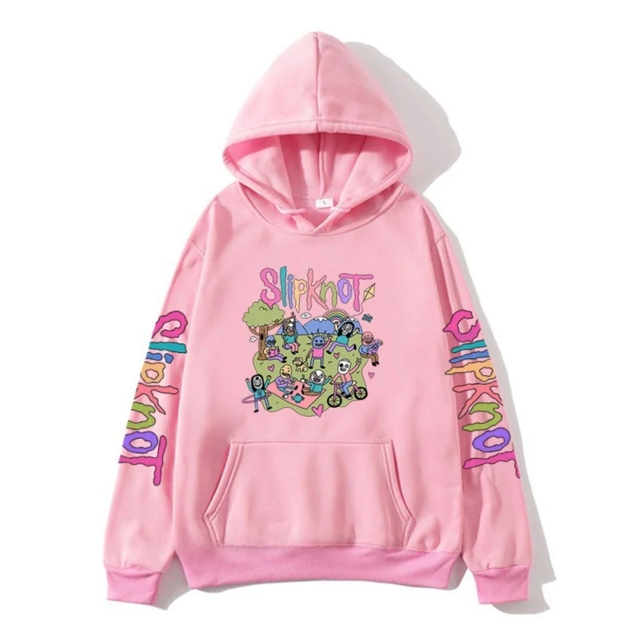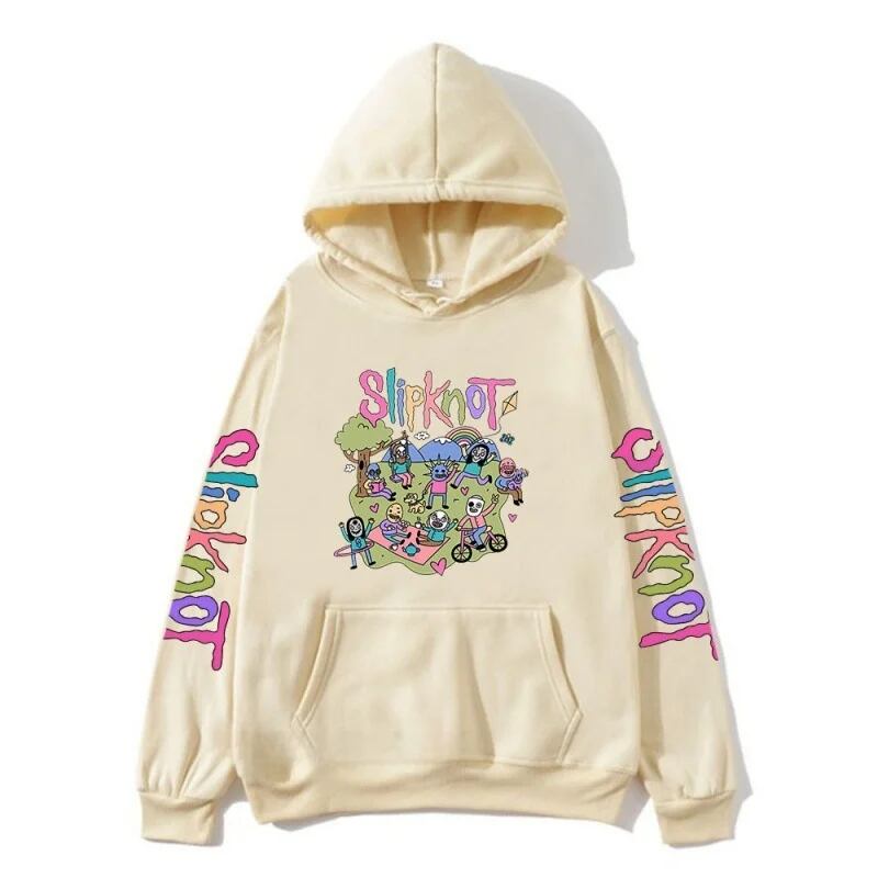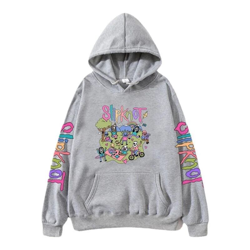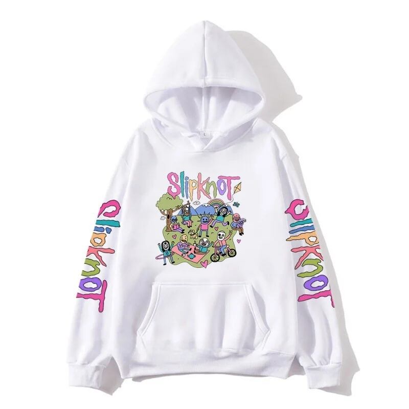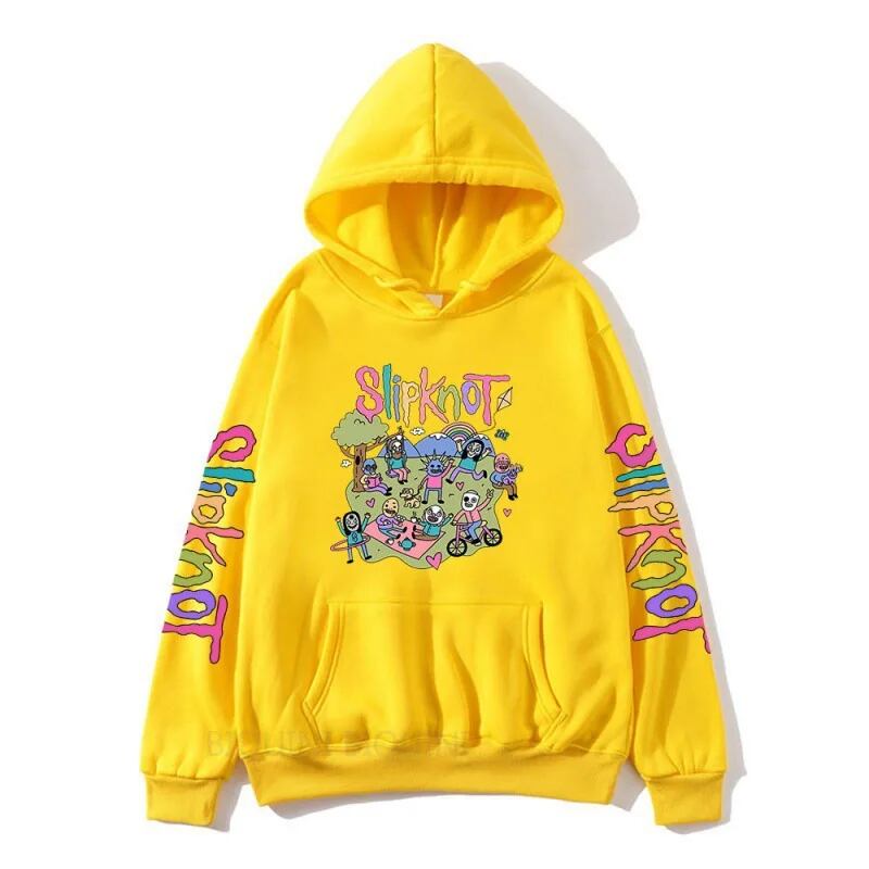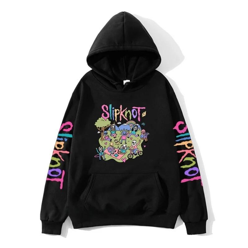 新たに登場したスリップノット フード付きパーカー カートゥーンデザインは、アウトドアやストリートシーンに最適な個性的なプルオーバートップスです。カートゥーンデザインが特徴的で、レインボーカラーが目を引くこのパーカーは、メタルやロック、パンクスタイルを愛するあなたにぴったりの一着です。