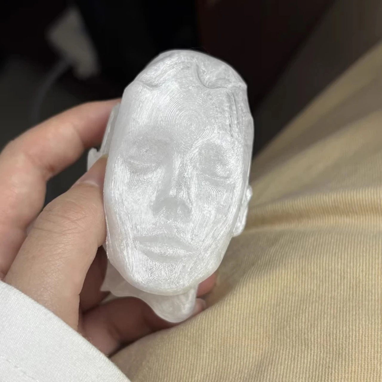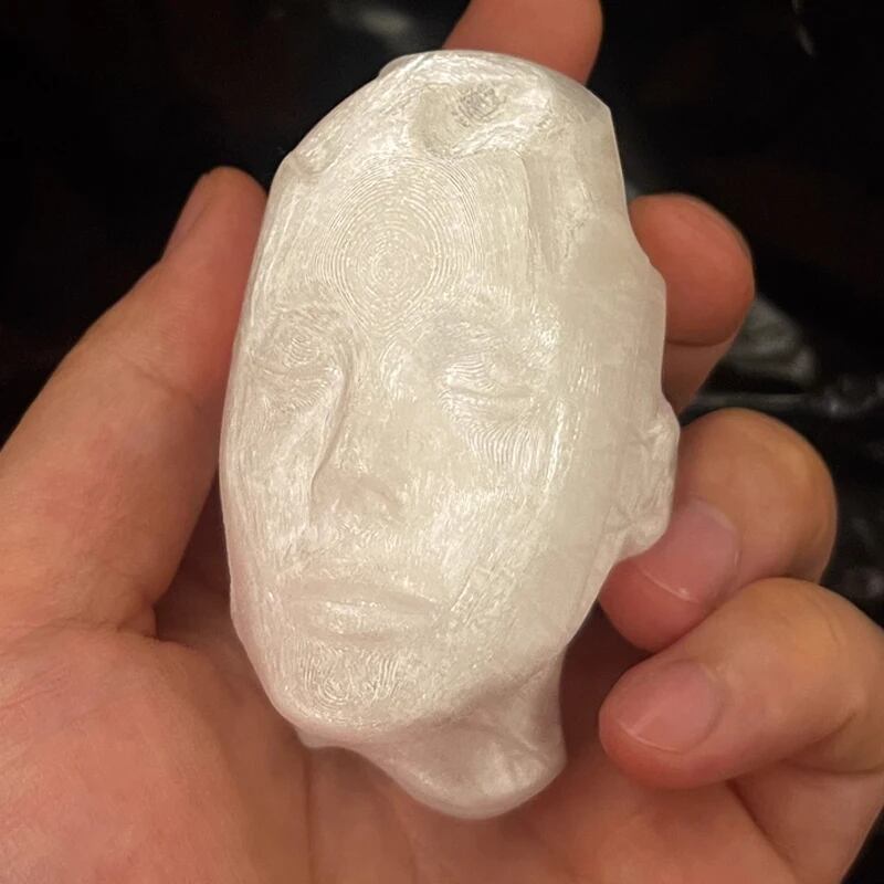 1. 顔の彫刻デザインが印象的で、持ち歩くのが楽しくなるアートアイテムです!