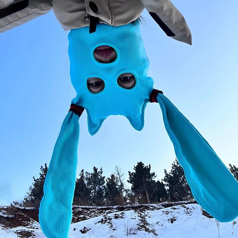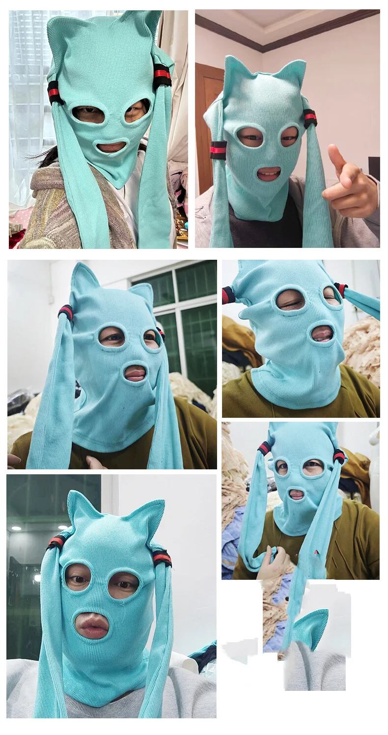 顔面完全防寒ニット帽 刺繡ウールニットマスク ロングヘアーver 新色追加 暖かいクール帽子 バラクラバ スノーボード スキー ウィンタースポーツ コスプレ 飛沫防止 ワンサイズ コスチューム コスプレ 日焼け止め イベント DJ