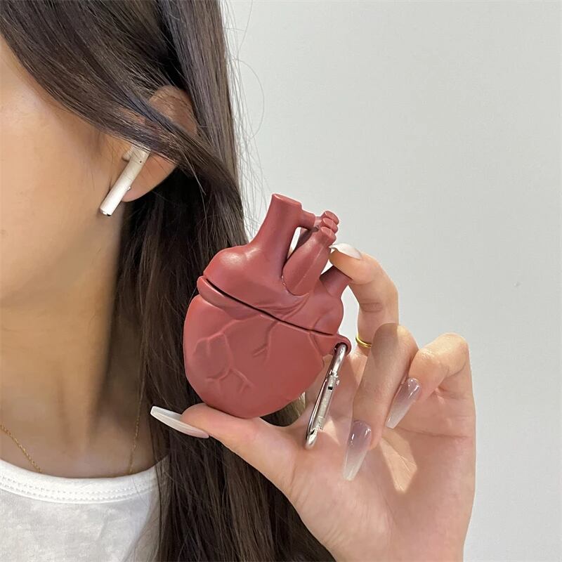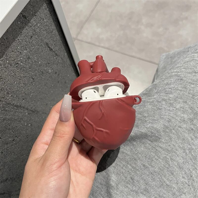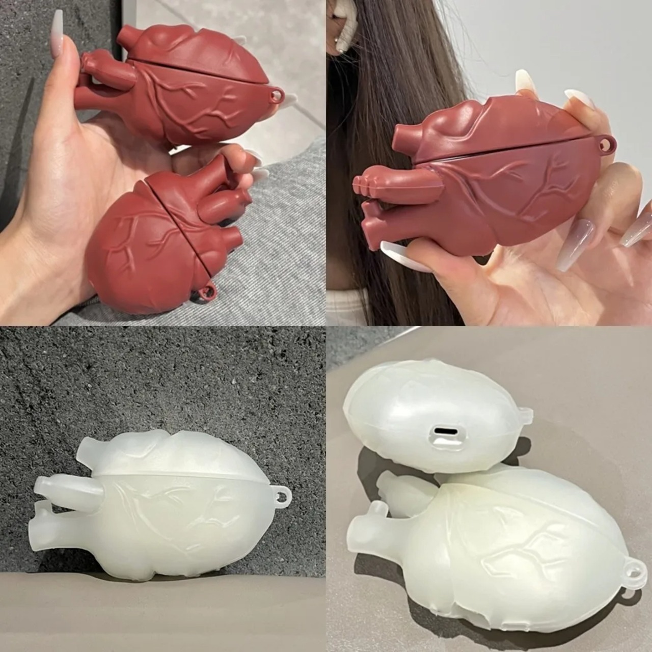 心臓 Airpodsイヤホンケース クリエイティブデザイン 暗闇で光るスケルトンタイプ 耐衝撃 シリコン アクセサリー AirpodsPro 1 2 3