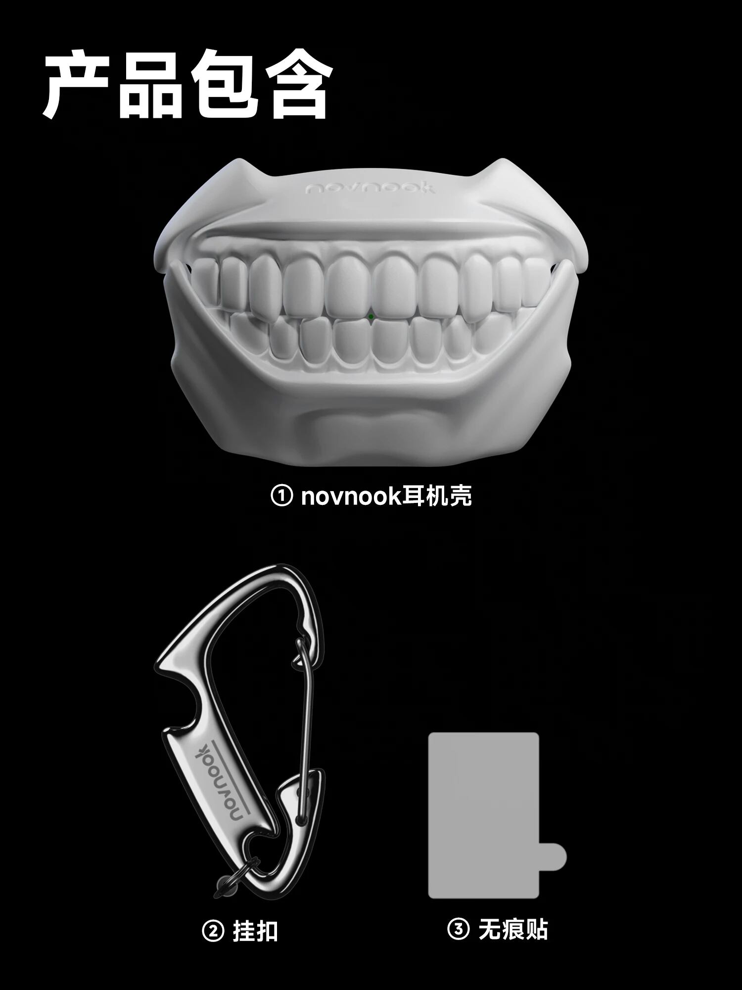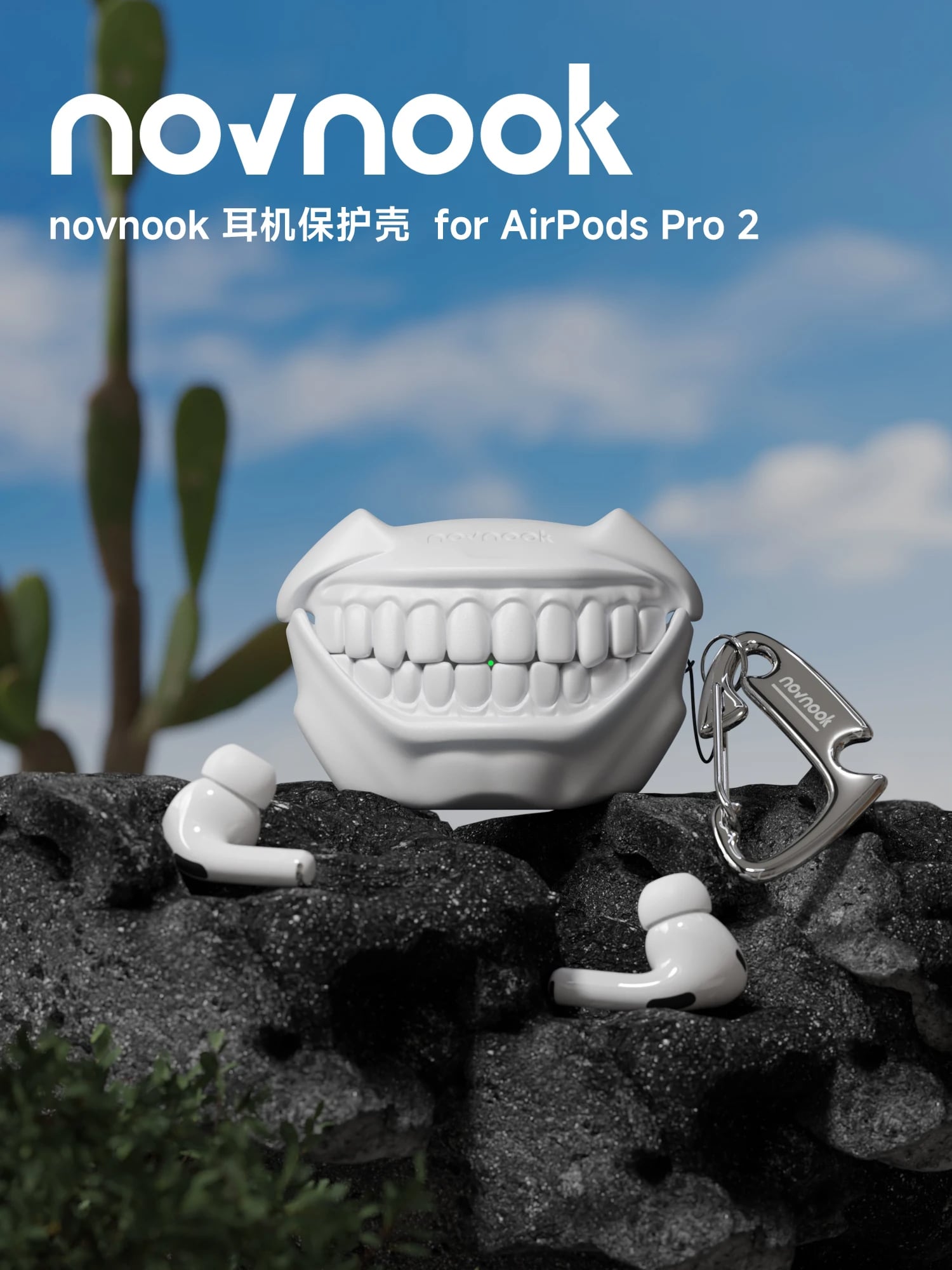 THE TEETH Airpodsイヤホンケース ハイクオリティーオリジナル novnook カラビナ付き 耐衝撃 シリコンラバー アクセサリー AirpodsPro 1 2